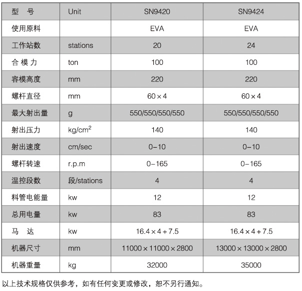 SN-9424全自動(dòng)回轉(zhuǎn)式塑膠鞋類(lèi)初坯注射成型機(jī)
